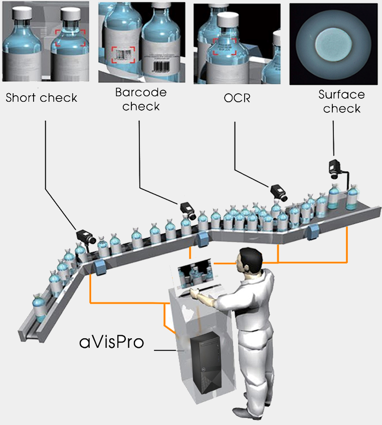 Kiểm tra nhãn sản phẩm: Sử dụng phép đo khoảng cách, công nghệ aVisPro sẽ kiểm tra nhãn dán có bị lệch hay không, đồng thời kiểm tra lỗi trên bề mặt nhãn.