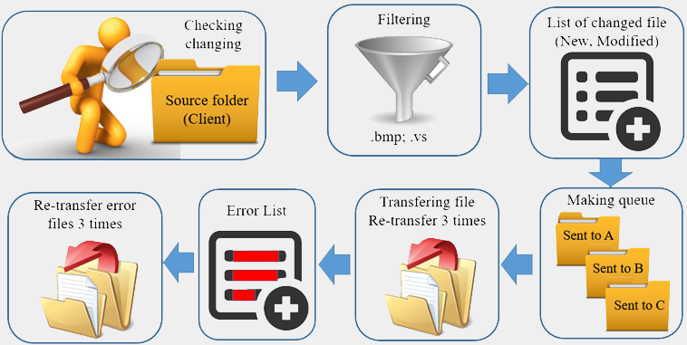 - Quá trình truyền tệp bắt đầu khi tệp được tạo (Kiểm tra thư mục sau mỗi n giây)