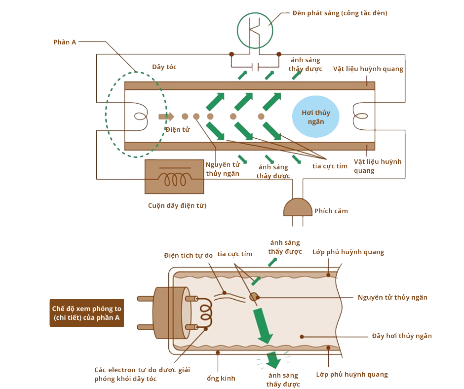 Cơ chế và phương pháp phát sáng của đèn huỳnh quang đời đầu