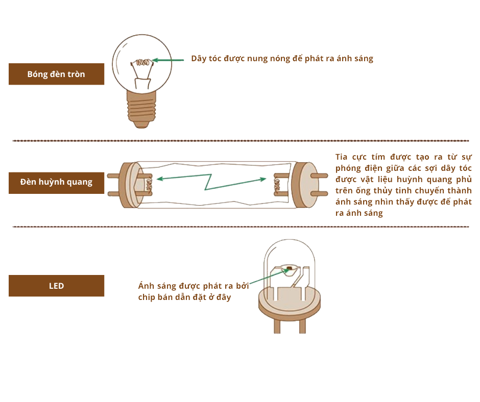 Cơ chế và tính năng của các nguồn sáng khác nhau