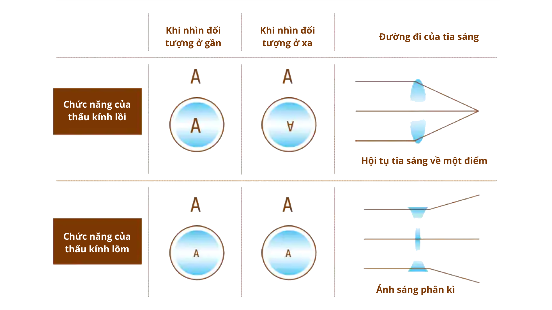 Cơ chế khúc xạ và chức năng của thấu kính cầu lõm và thấu kính lồi